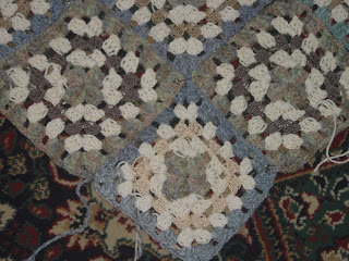 I have finished crocheting all of the squares for my second granny square shawl and so will hopefully finish that off later today. I still haven't made a decision on the next project but I need to make some squares for the Oxfam appeal and make some kind of contribution to the knitted chandelier that the King's Arms ladies have been working on. I thought perhaps some crochet flowers or a lacy trim for the edge. Everything they have made so far is a silver grey so I will have to search for something suitable in my bit box. Maybe a bit of very pale blue will fit in with the colour scheme. That will occupy me until I make a decision as will the toe up socks if I ever get around to finishing them.